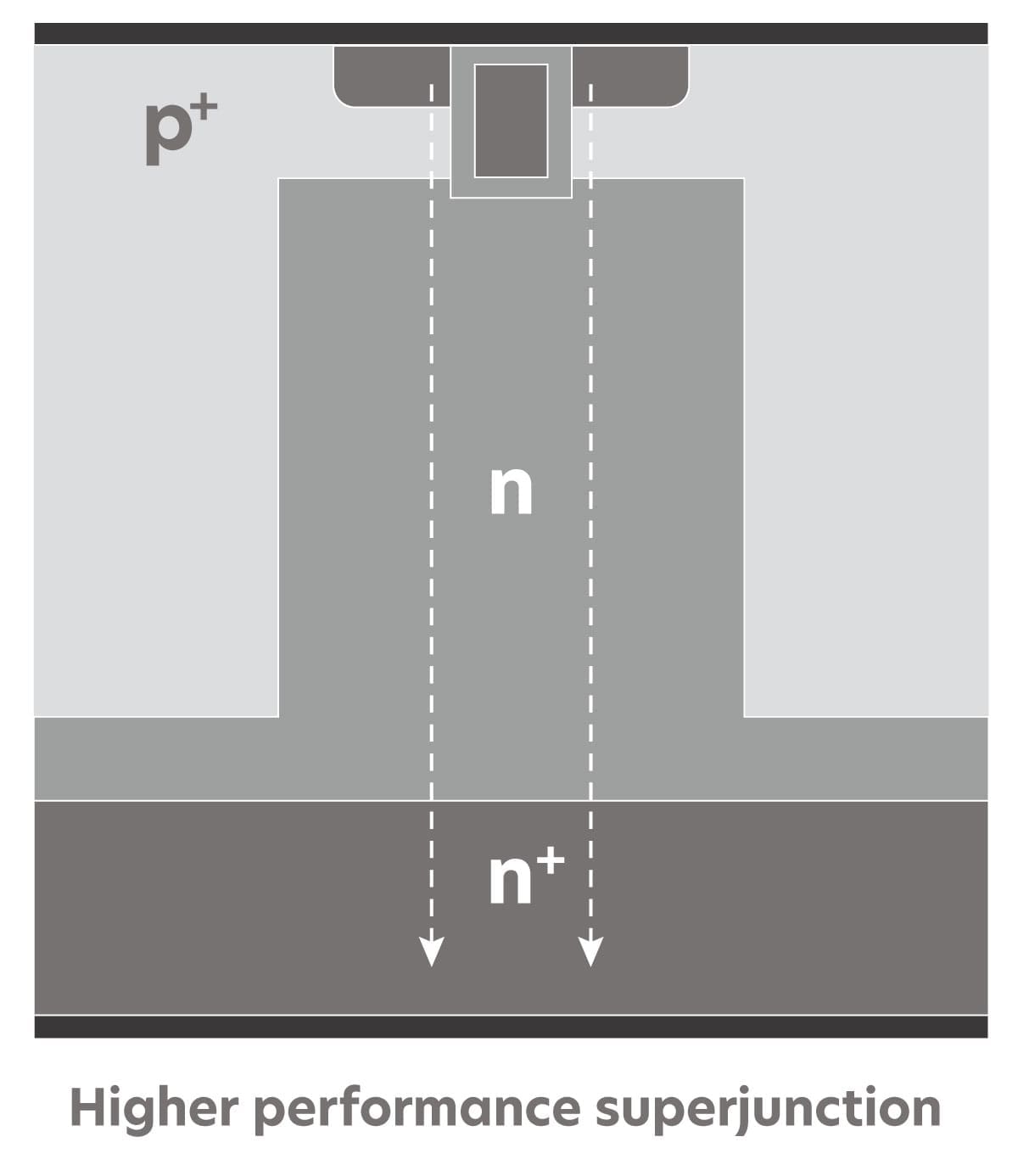 Further advances in WBG materials continued. In 2023, the first innovation in silicon was unveiled, with the announcement of the SuperQ structure. This increases n-type conductive area and lowers RDS(on) to improve efficiency and meet the needs of today’s high-power architectures. The technology became commercially available in 2025.