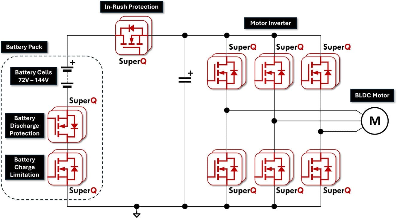 SuperQ MOSFETs are available for 48V to 144V battery architectures.